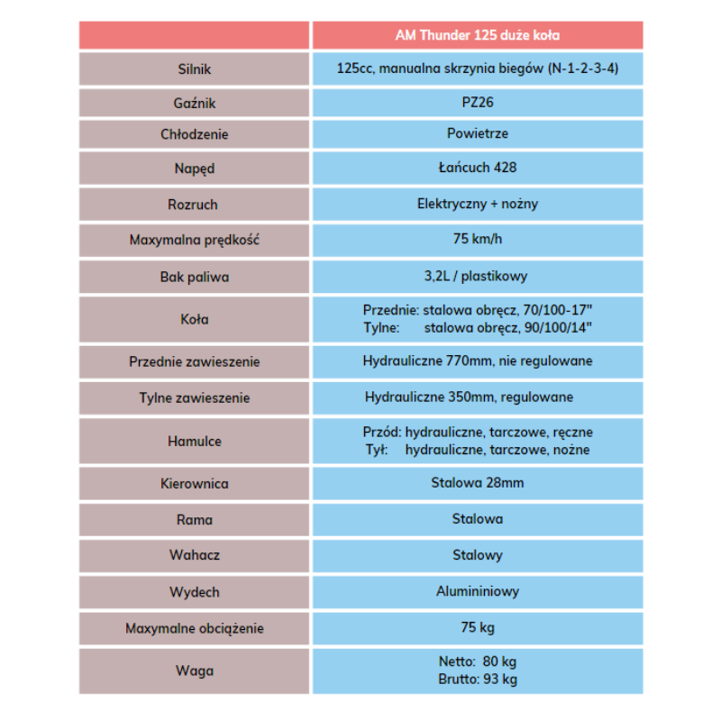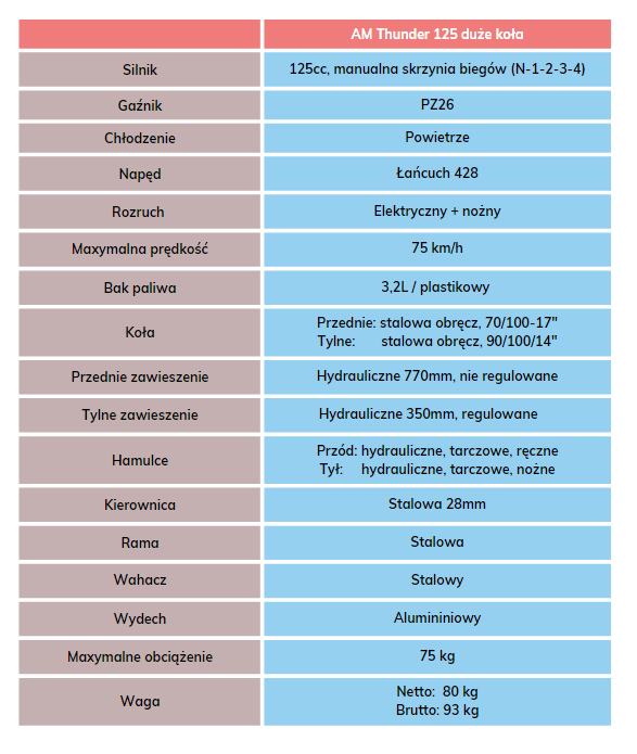 Motocykl AM Thunder 125 e-start, koła 17" i 14" Pit Bike / dla dzieci